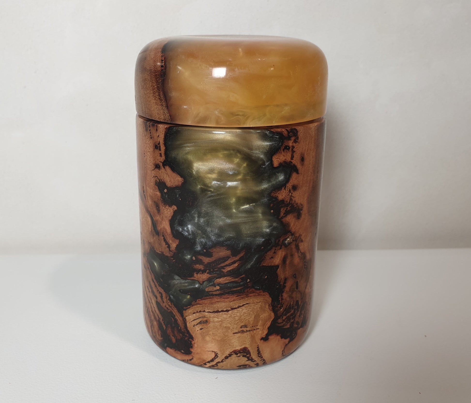 Eucalyptus Wood & Olive Green/Yellow Resin Canister