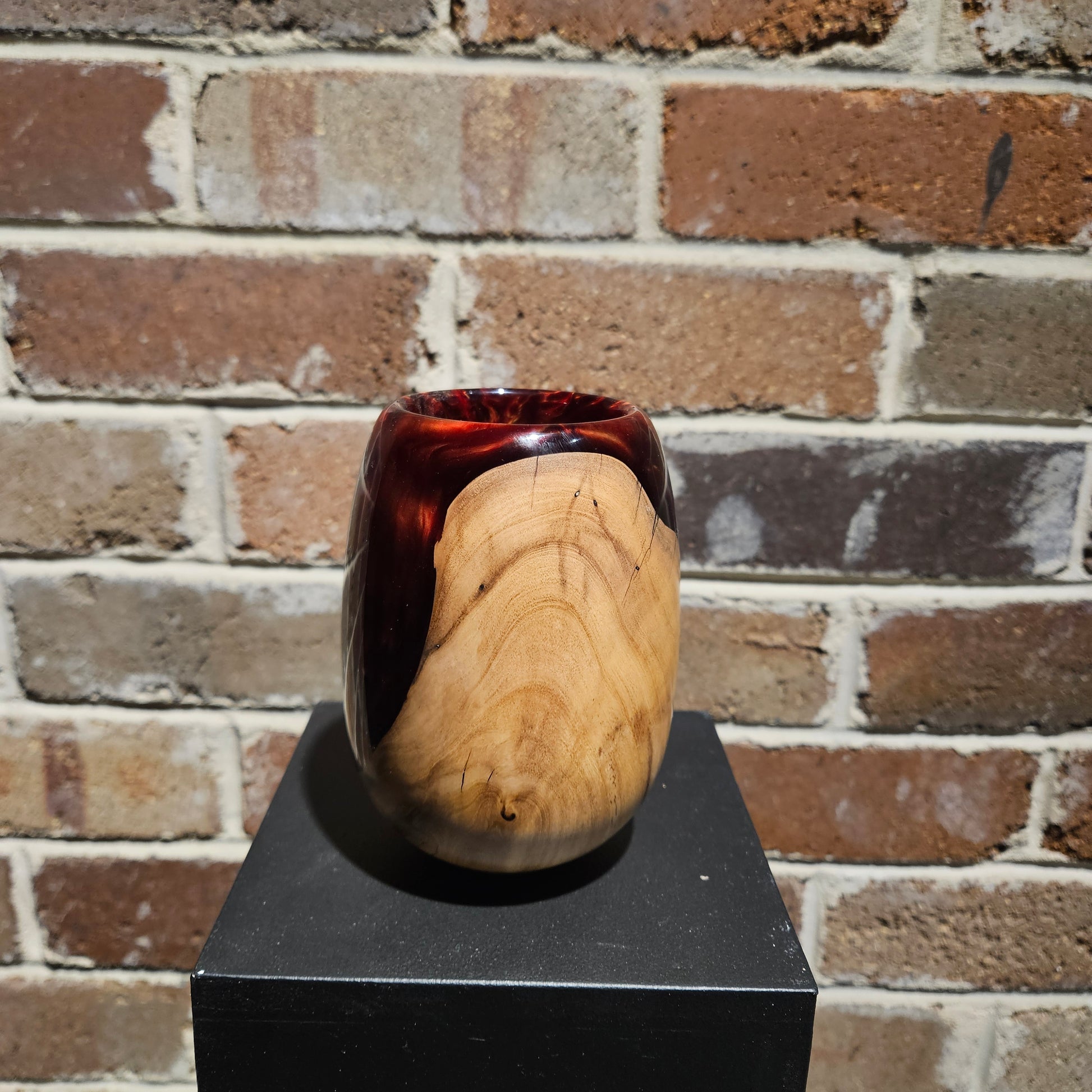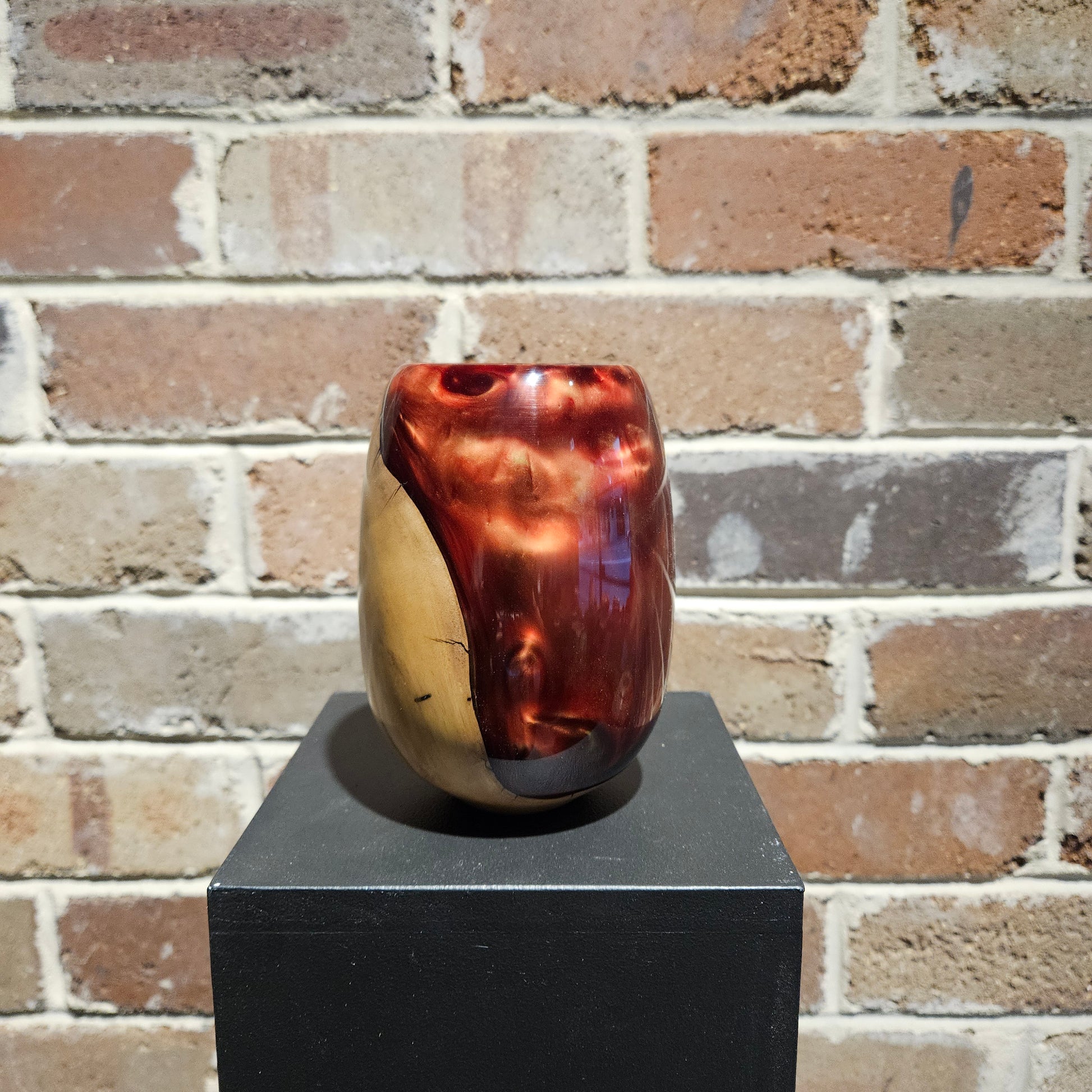 Handcrafted from beautiful olive wood with Metallic red/gold resin.