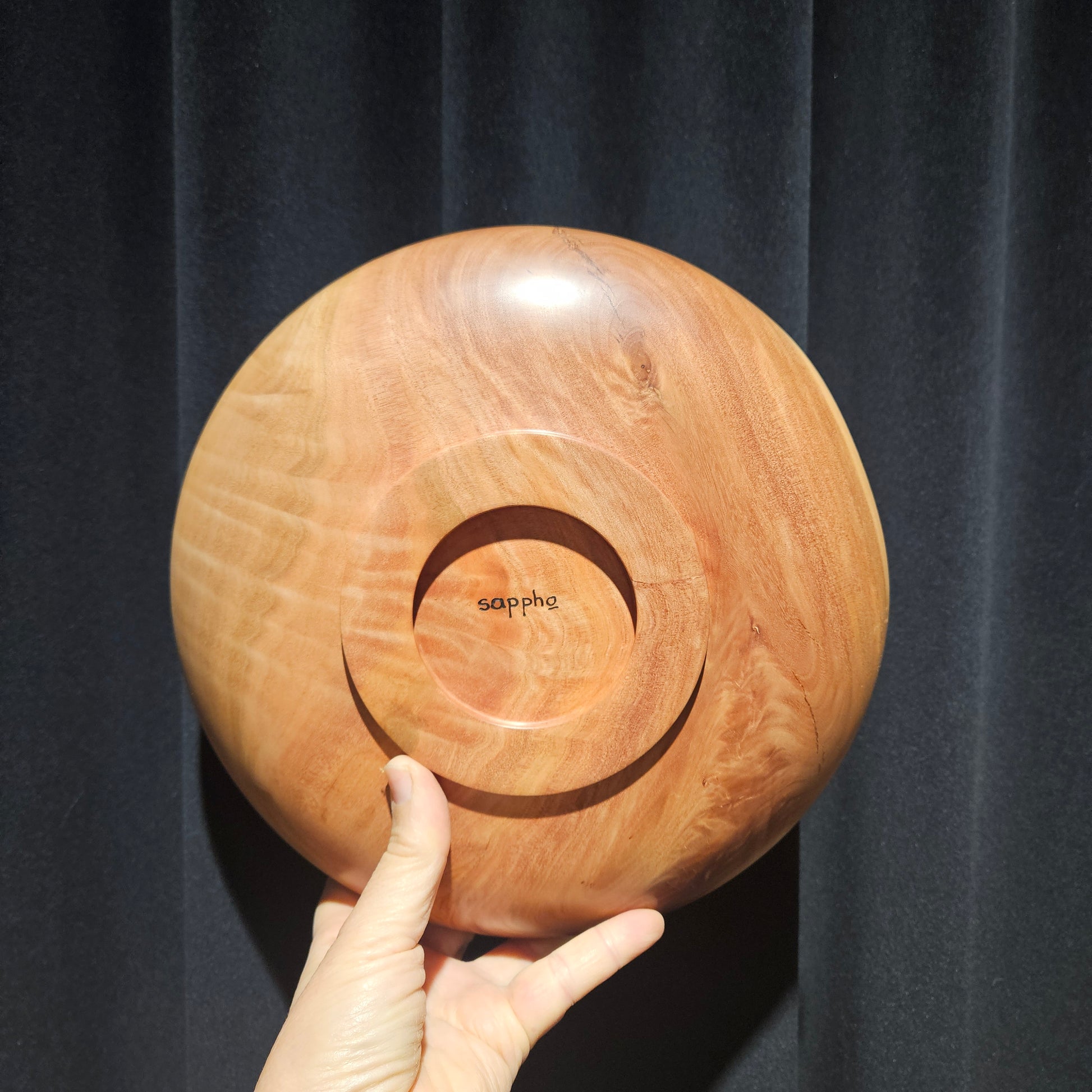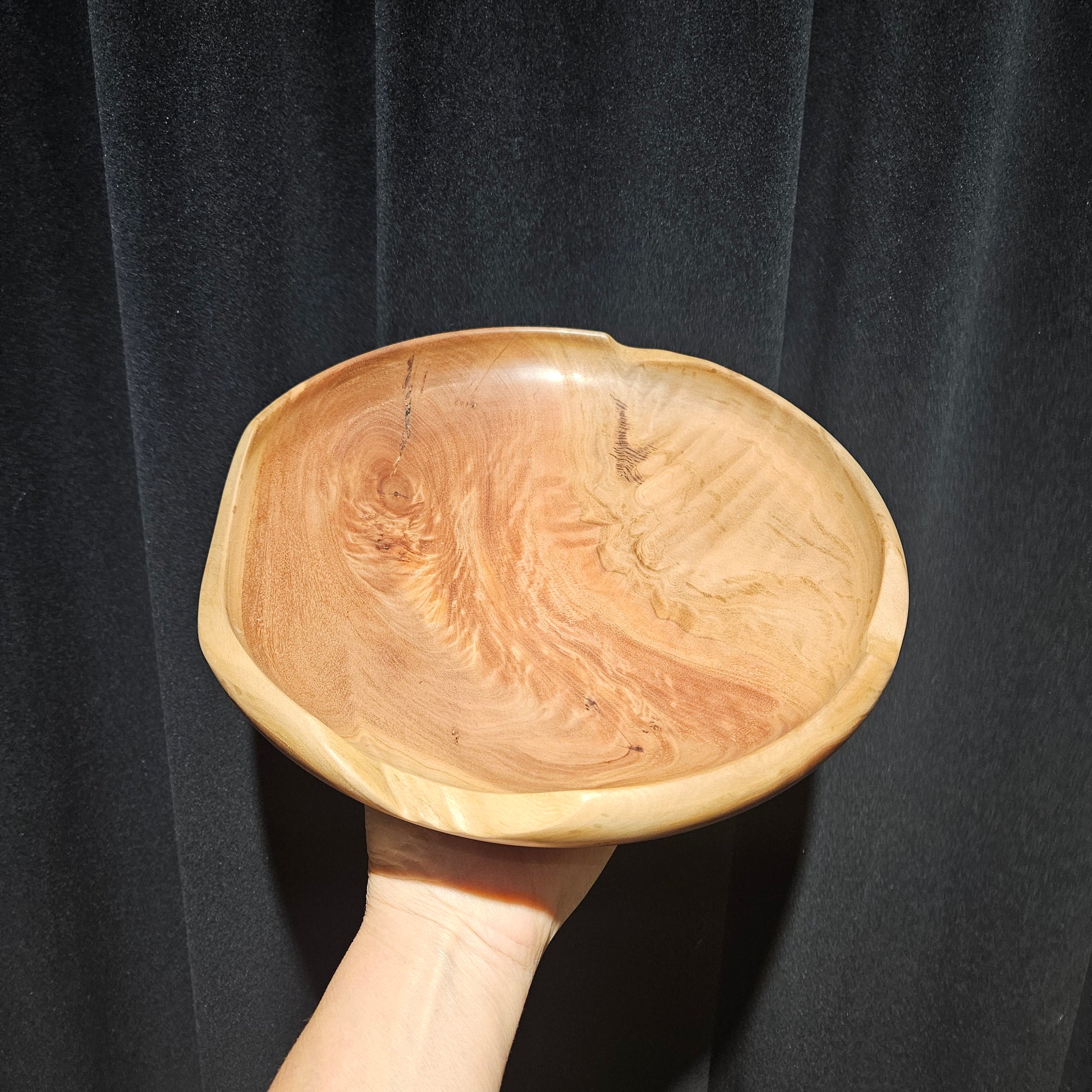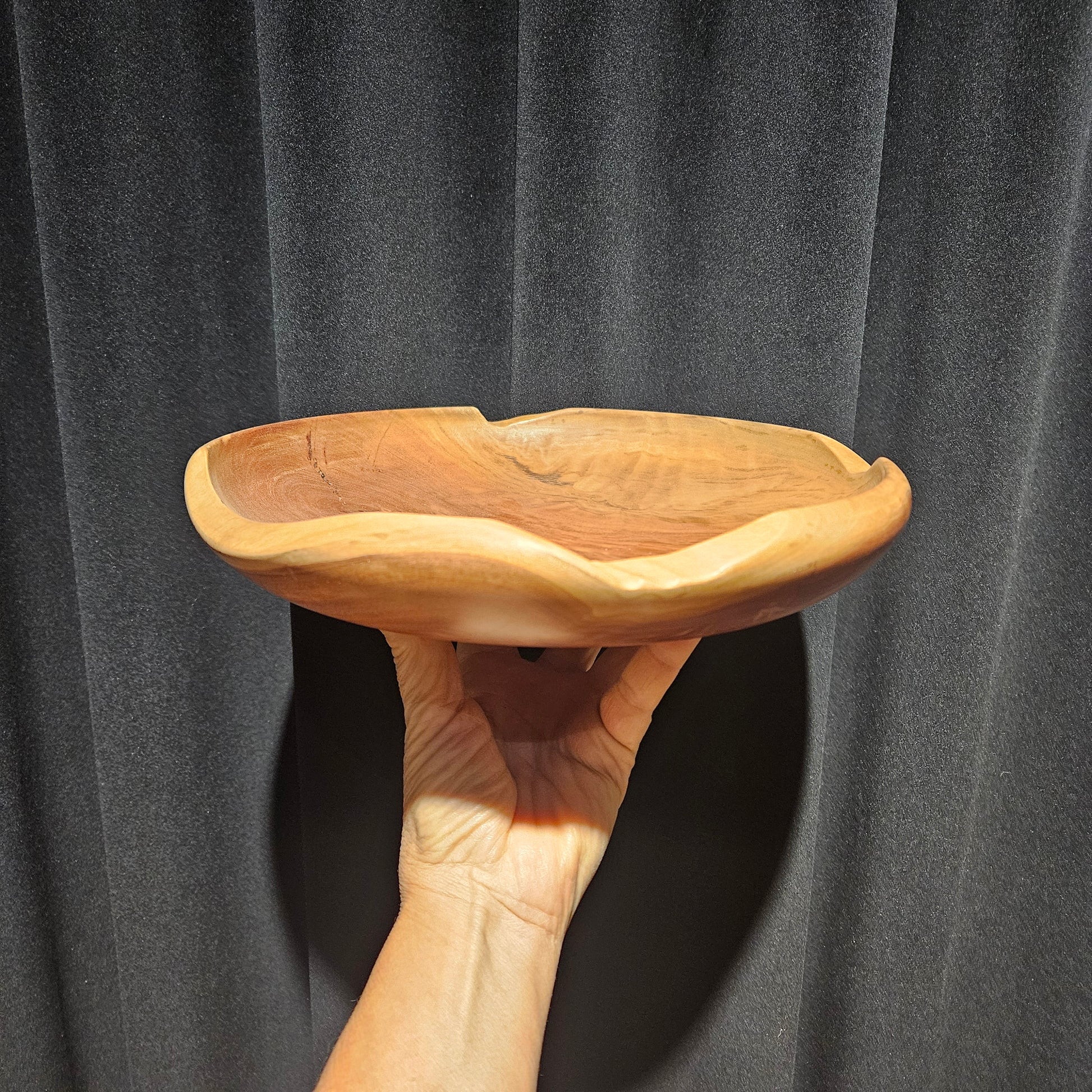 This unique handcrafted one of kind plate is made from an unknown wood species with a stunning crotch grain pattern with a live edge.