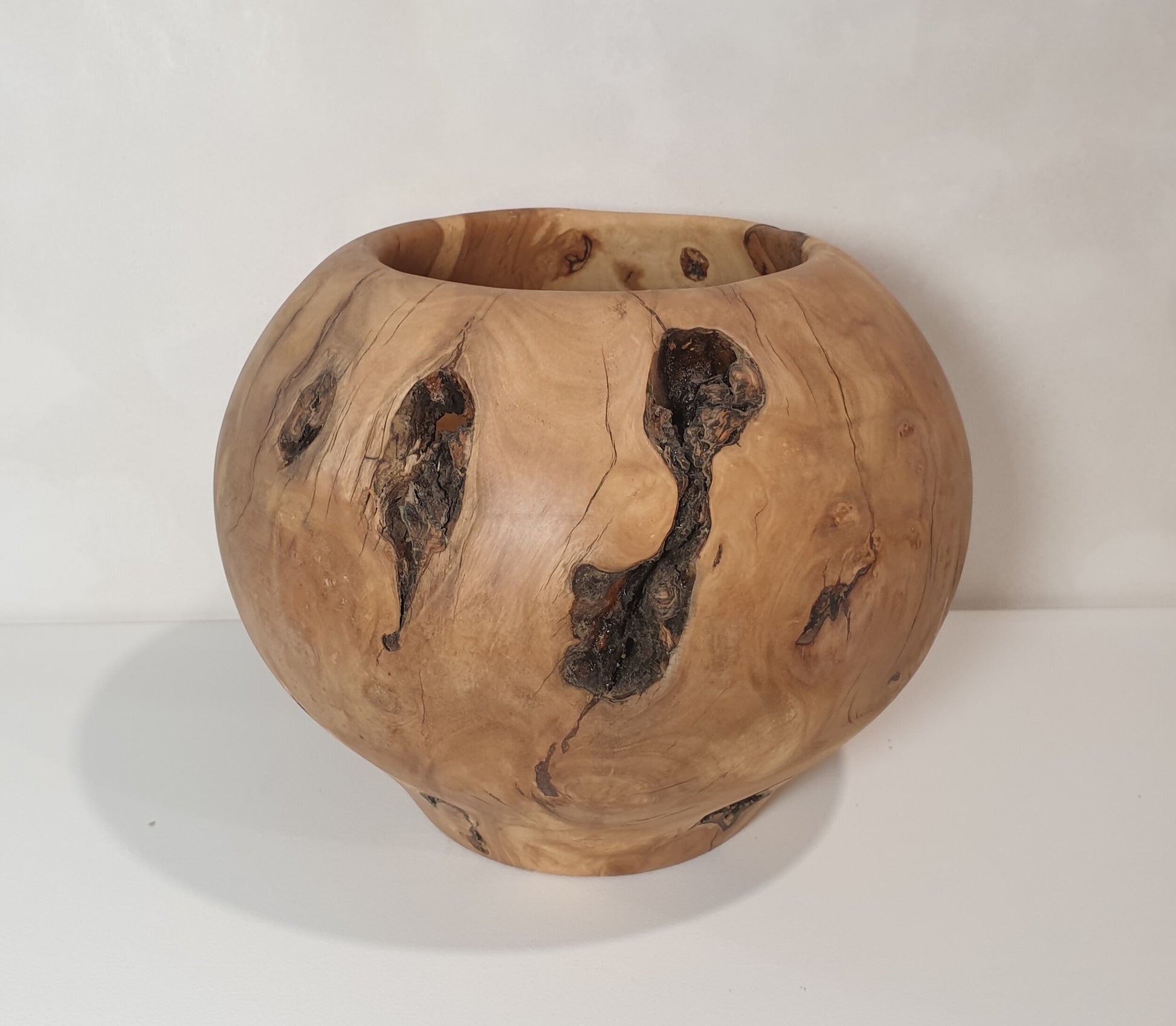 Handcrafted from an olive wood root ball. This bowl has been left with natures natural voids.