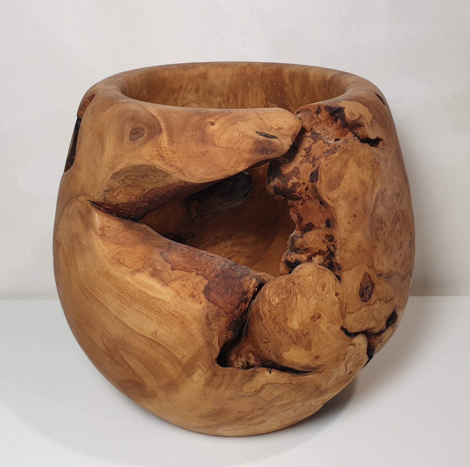 Handcrafted from an olive wood root ball keeping the natural beauty of the voids.