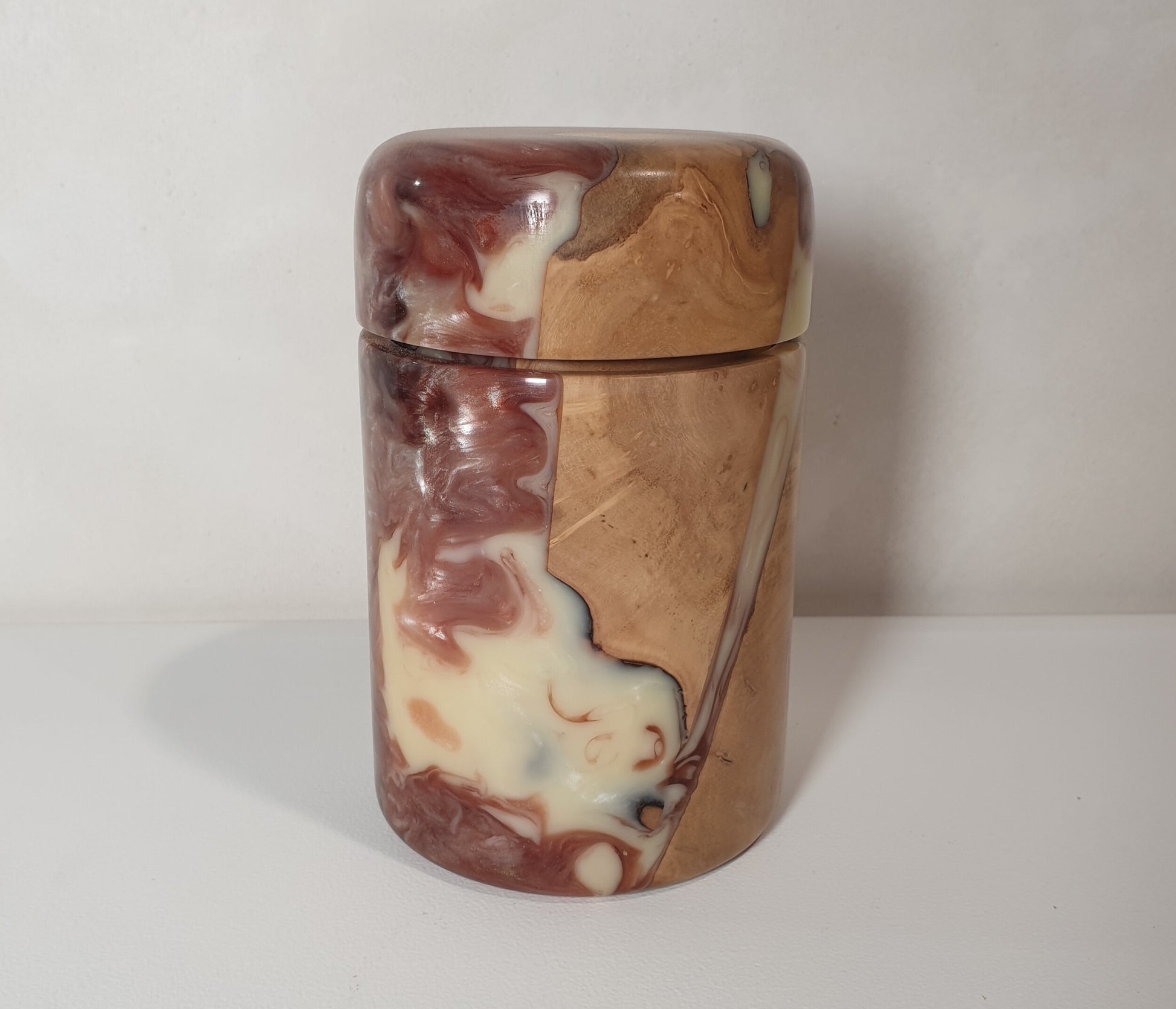 Olive Wood & Pink/White Resin Canister