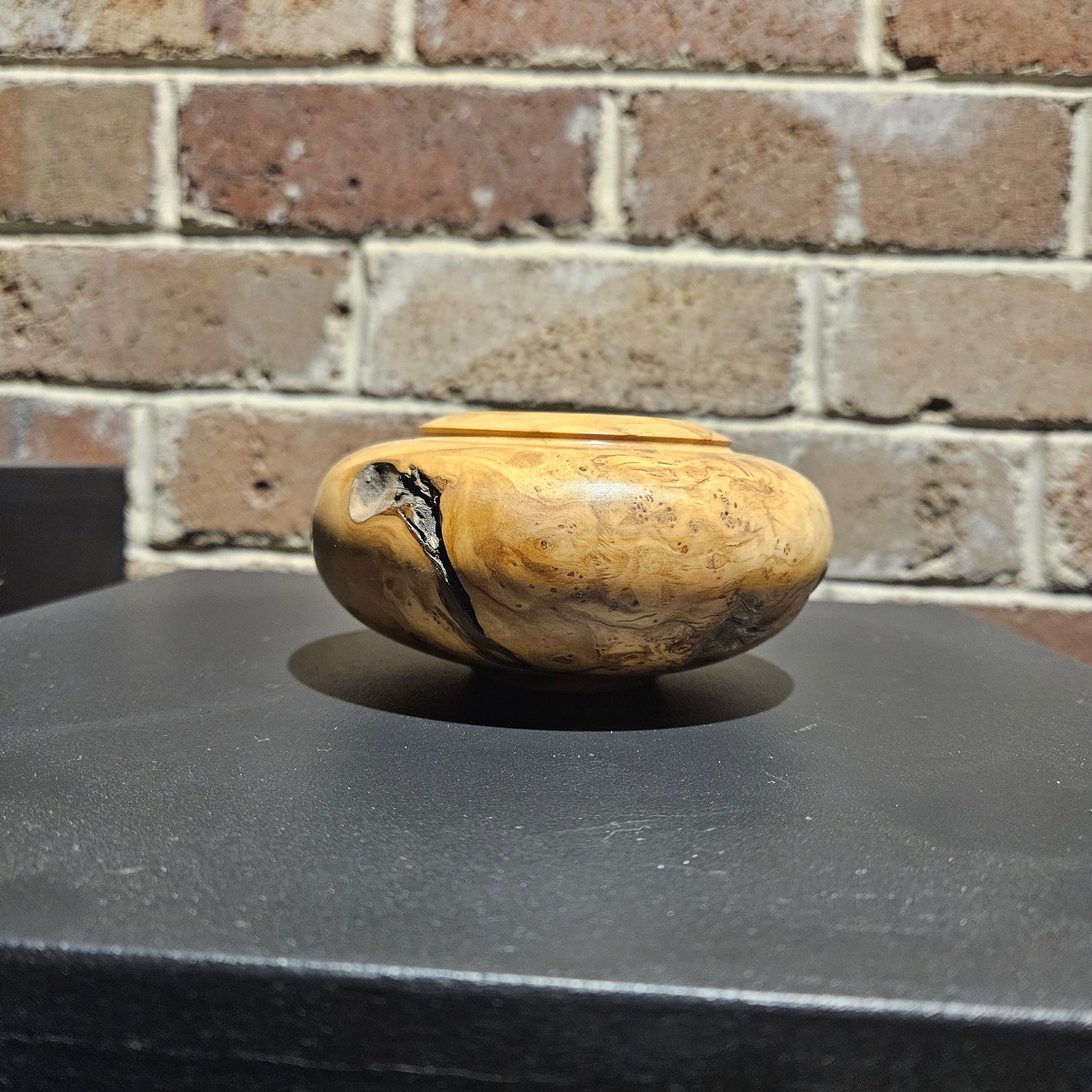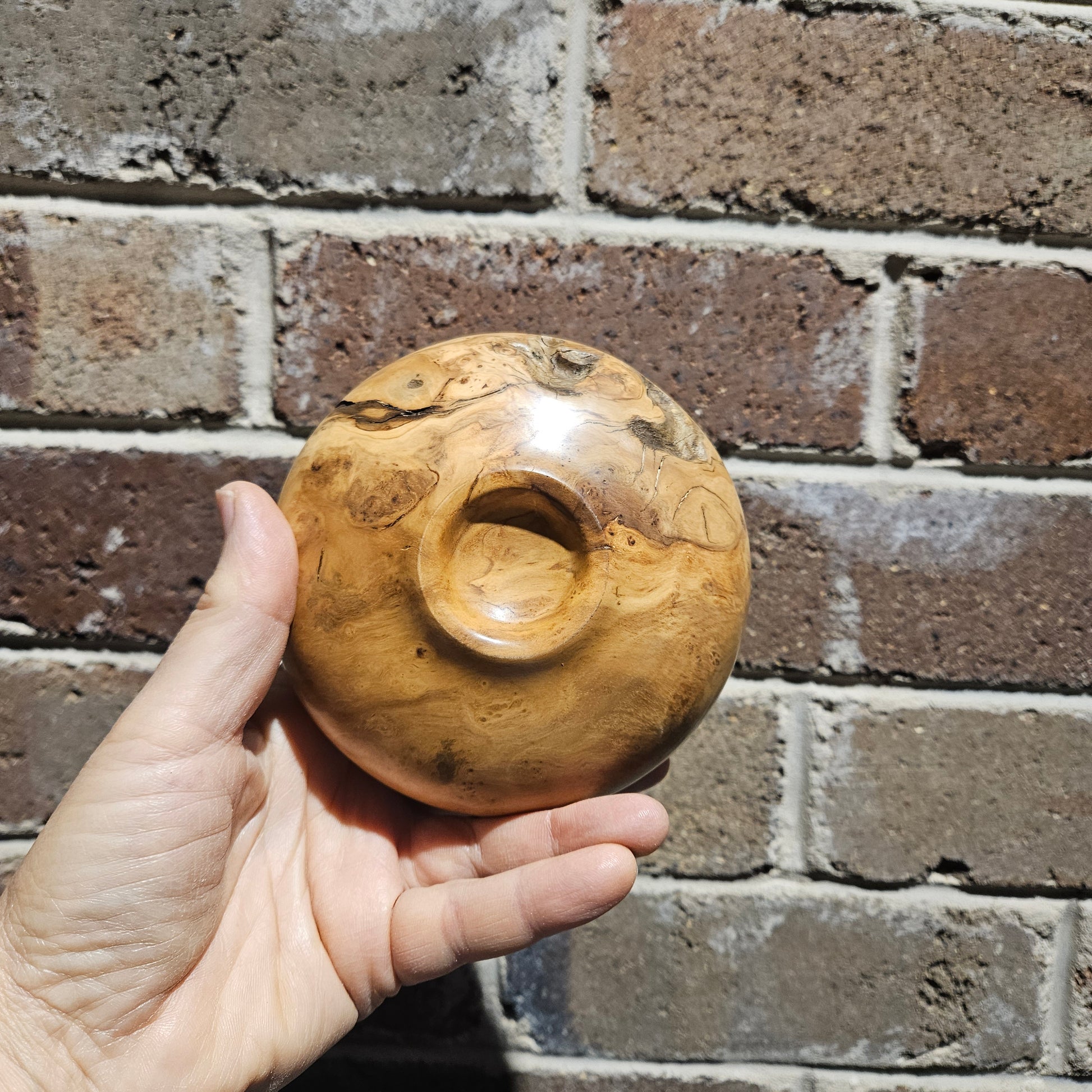 This unique handcrafted decorative bowl is made from olivewood burl which has beautiful grain pattern and natural voids. This is a one of a kind piece.