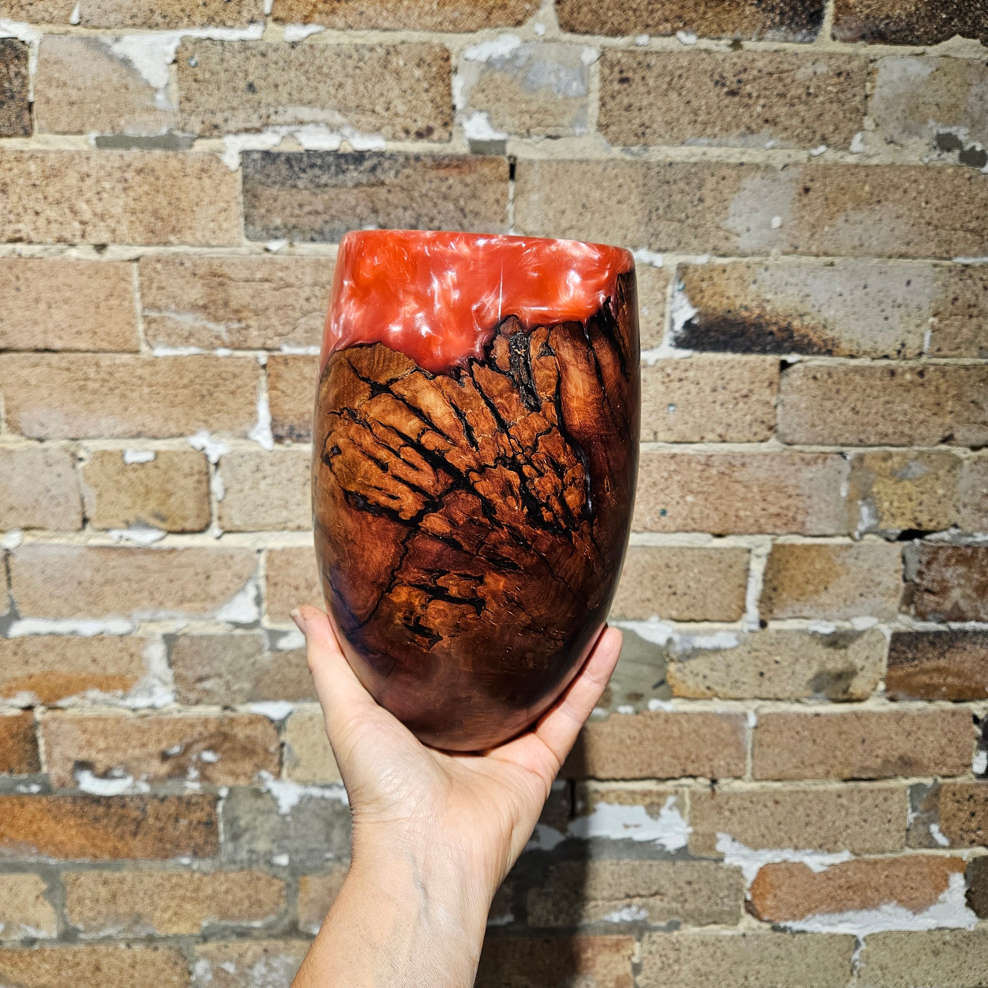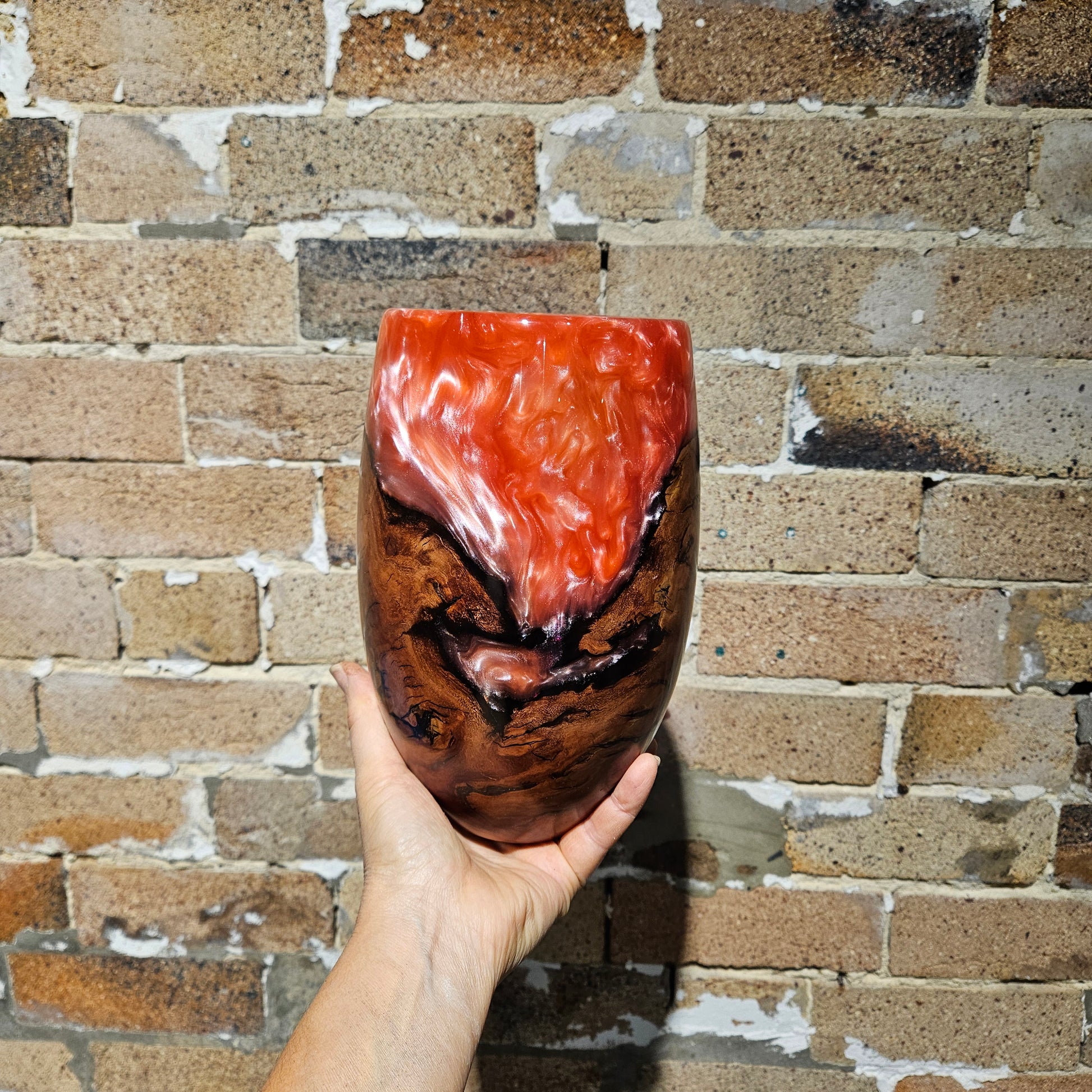 Pearlescent Pink Resin & Ironbark Vase